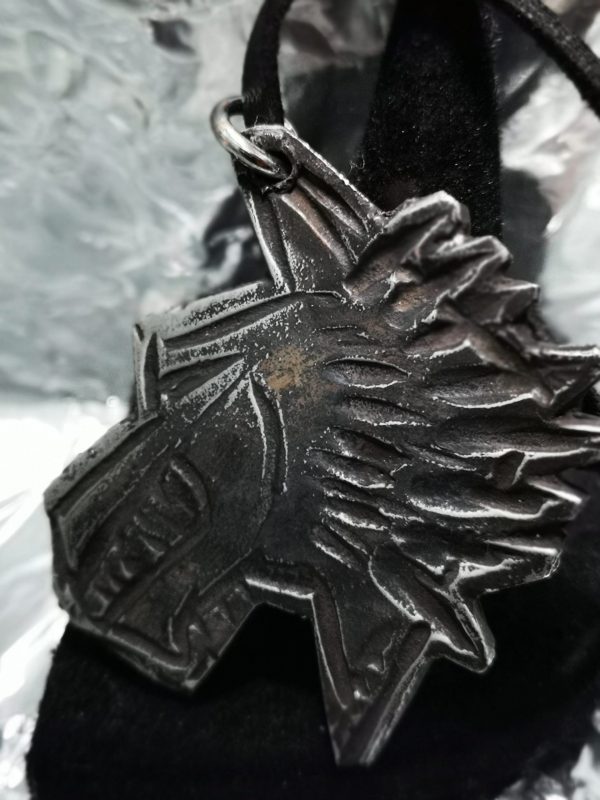 Designed by hand and casted by a craftsman in sand from lead free pewter on an adjustable leather cord